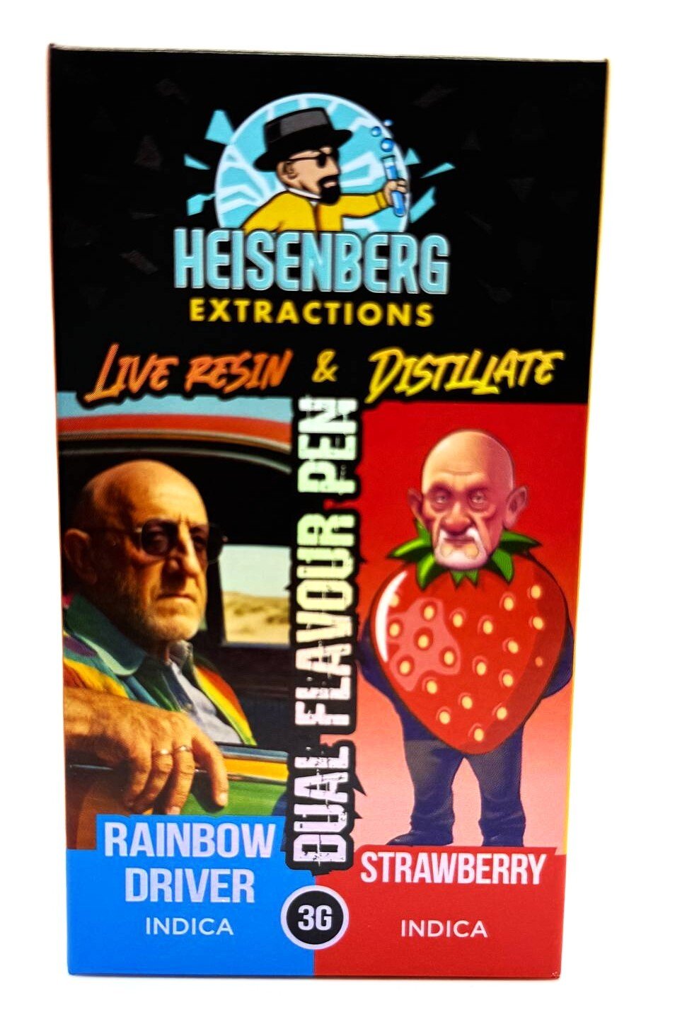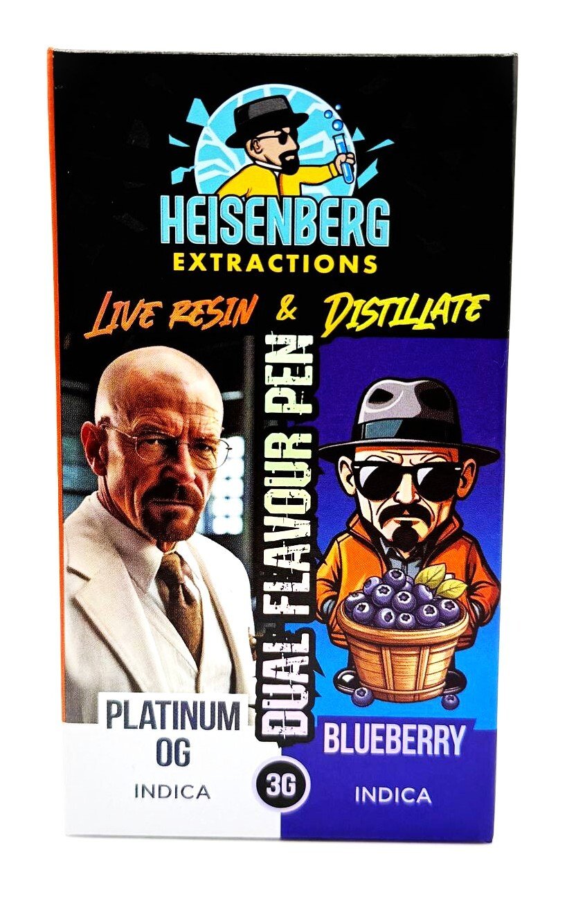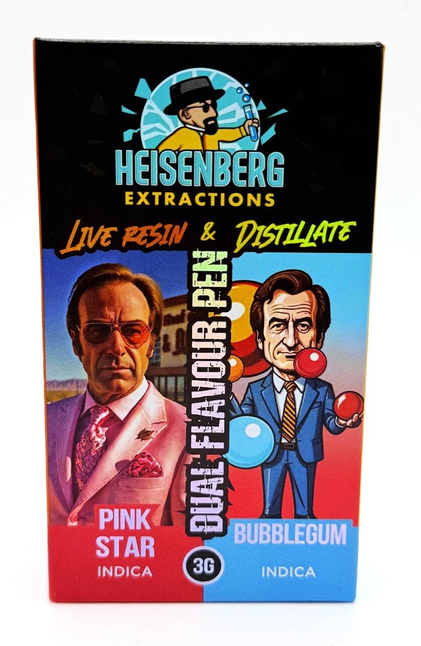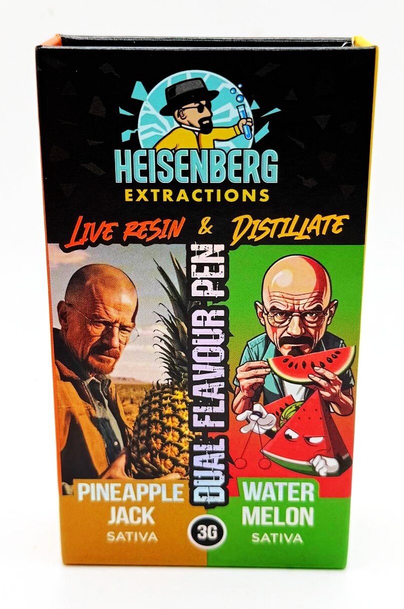 Heisenberg Extractions disposable Vape Pen contain 3 grams of THC and with there revolutionary duel chamber technology you can enjoy 2 flavours in 1 device! THC 90+%